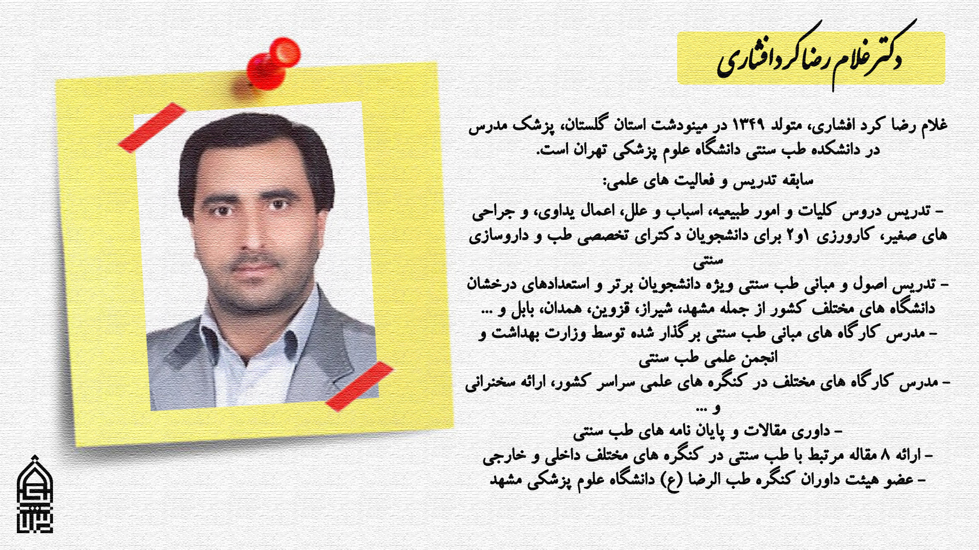 بیوگرافی کوتاهی از اساتید طب سنتی در اختیار شما بزرگواران قرار میگیرد تا با اطمینان خاطر بیشتری از مطالب این بخش استفاده نمایید.